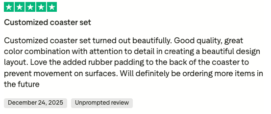 • Customized coaster set turned out beautifully.